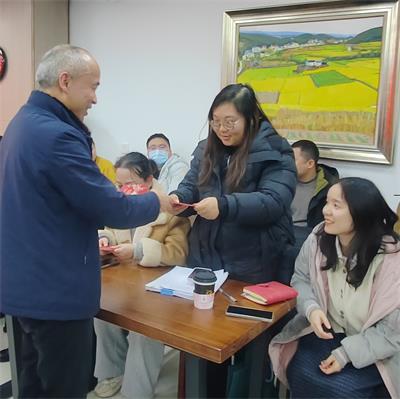 大會最后,迎來溫馨喜慶的新年紅包發(fā)放環(huán)節(jié)。董事會主席劉治勇為每一位員工親手送上新年紅包,承載著公司的新春祝福與深切關(guān)懷,既是暖心心意,更是前行期許與奮進鼓勵。