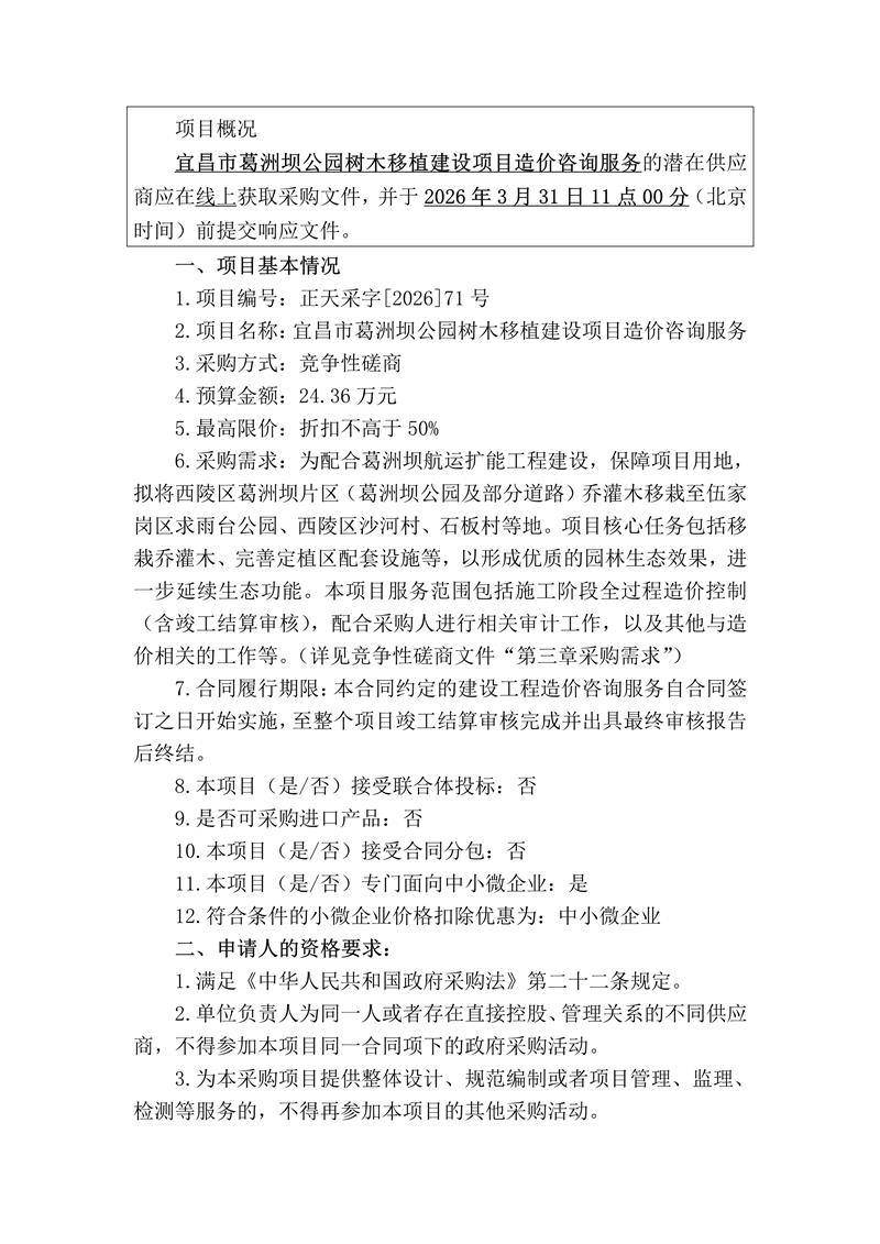宜昌市葛洲壩公園樹木移植建設(shè)項目造價咨詢服務(wù)競爭性磋商公告
